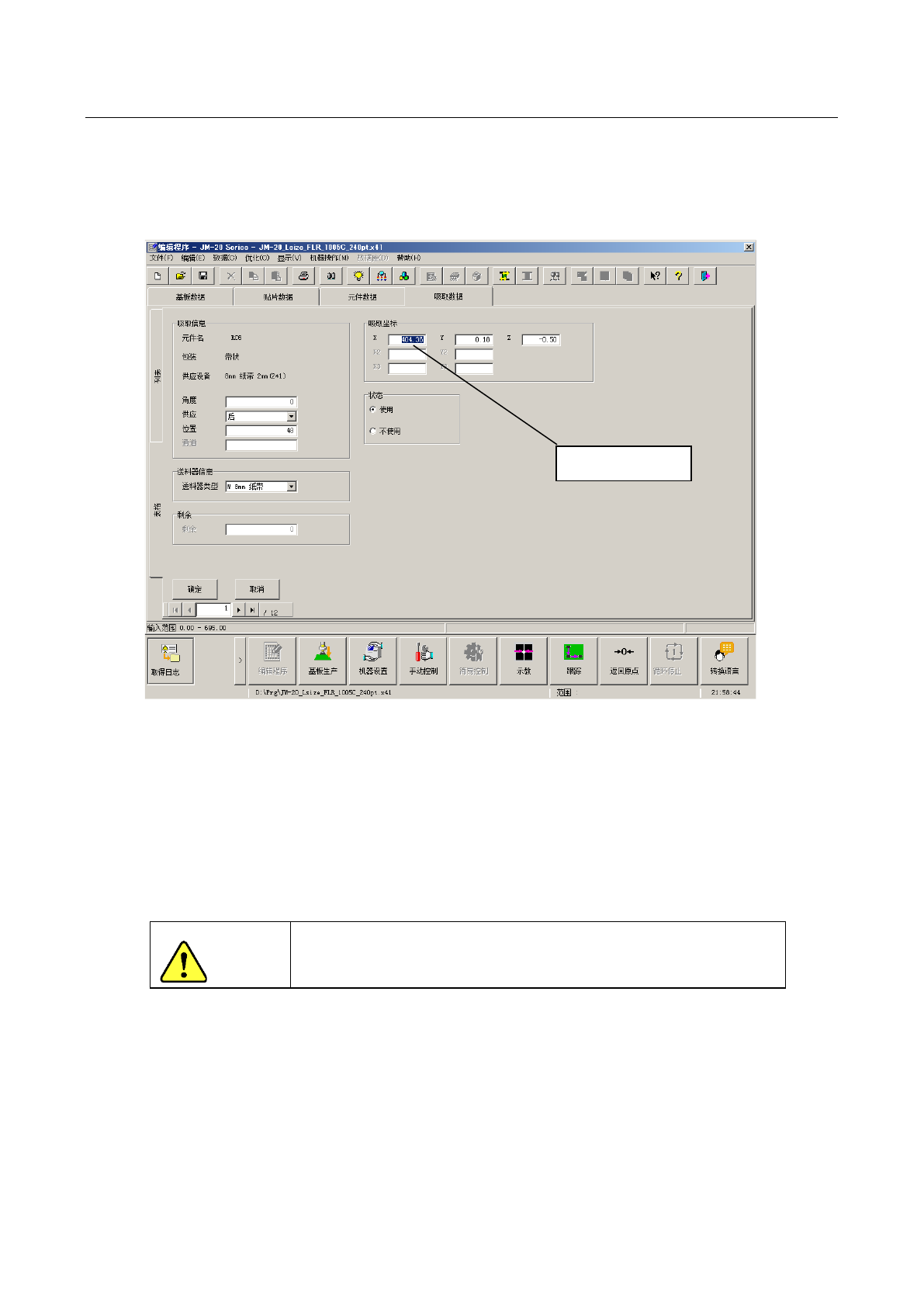 在对吸取位置进行示教后,如果使用的元件数据满足以下所有条件, 会出现显示供料器编号的