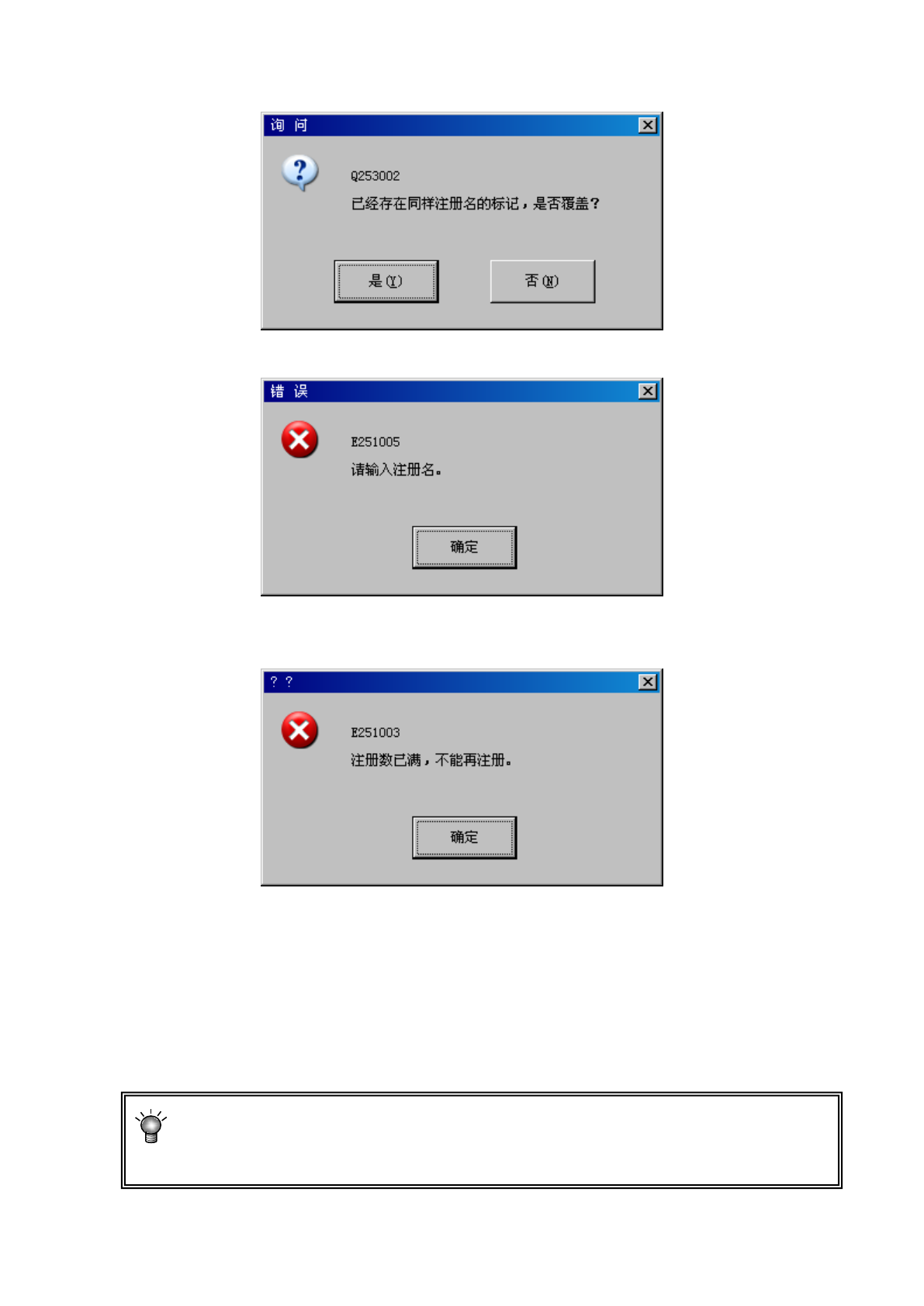 如果选择了列表中的标记,将进行覆盖注册。