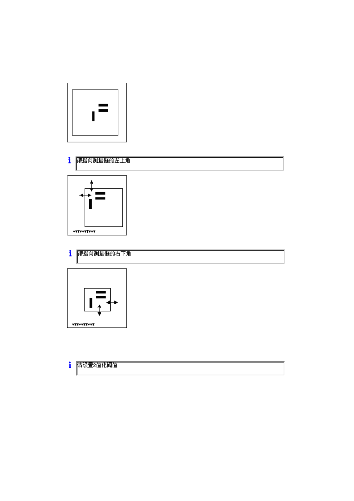 请用 8 个方向按钮,调整上面、左面、下面、右面(按照顺序输入),设置刻度框。