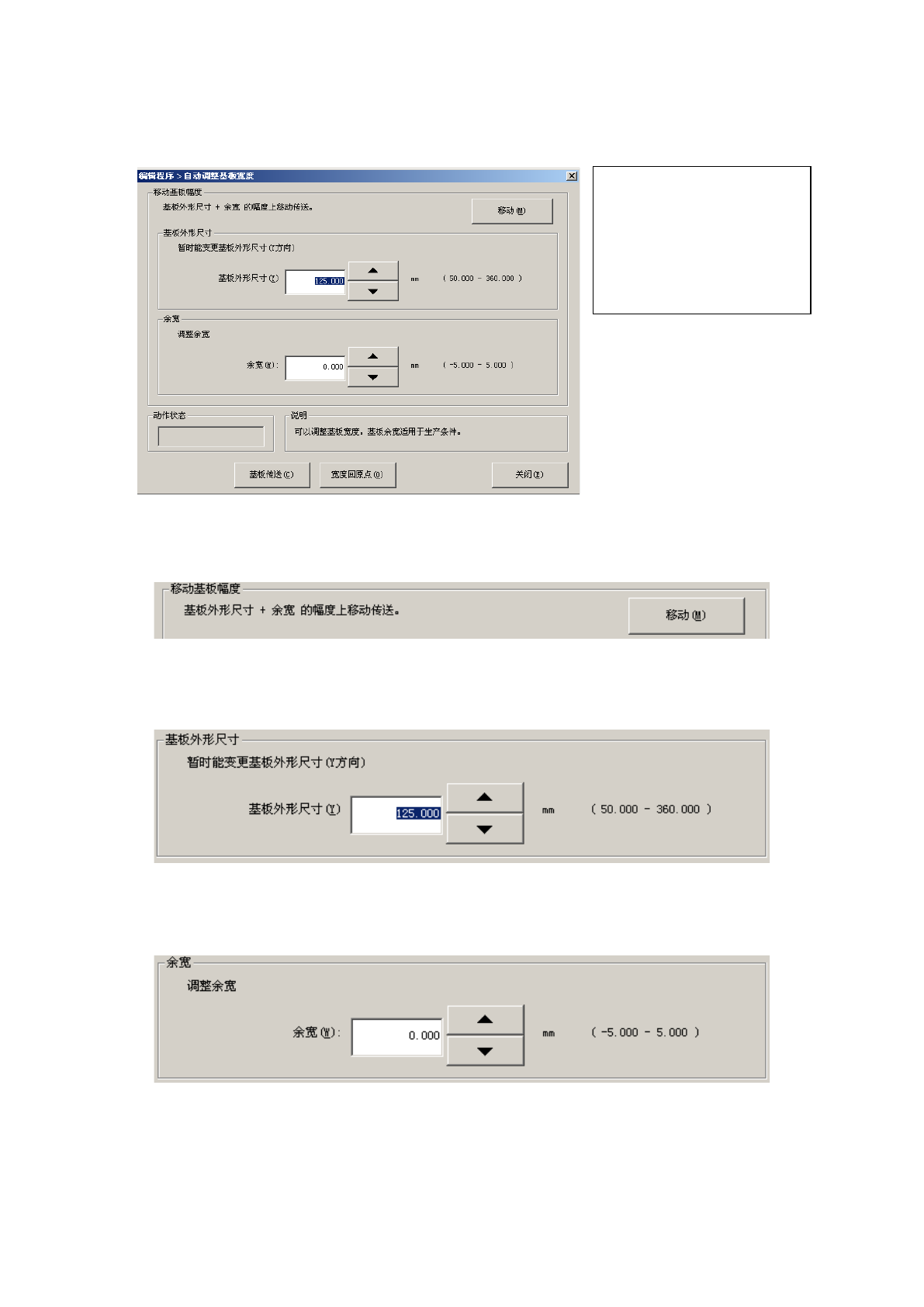 将传送宽度向基板外形尺寸+余宽的位置移动。运行时传送宽度值适用以下项目设定值。