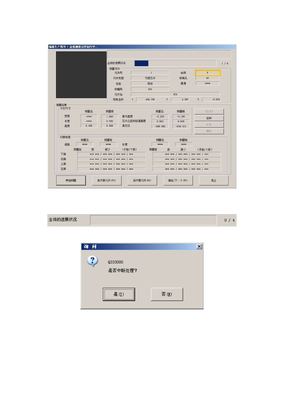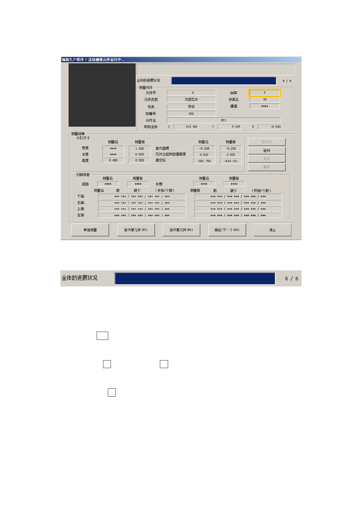 连续测量过程中显示如下画面。显示连续测量的元件内容及吸取位置,依次显示处理内容。