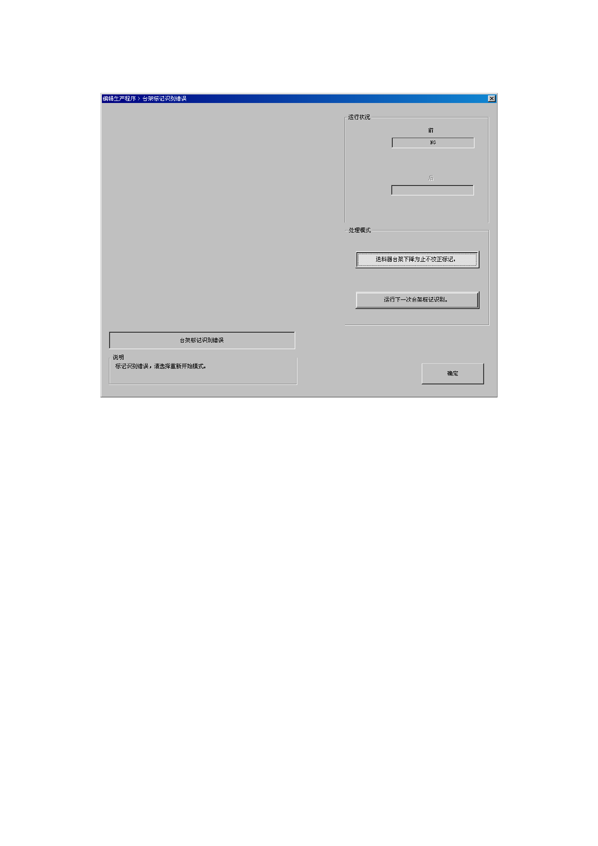 当识别台架标记失败,画面的[说明]栏显示提示信息时,可以选择[处理模式]的项目。
