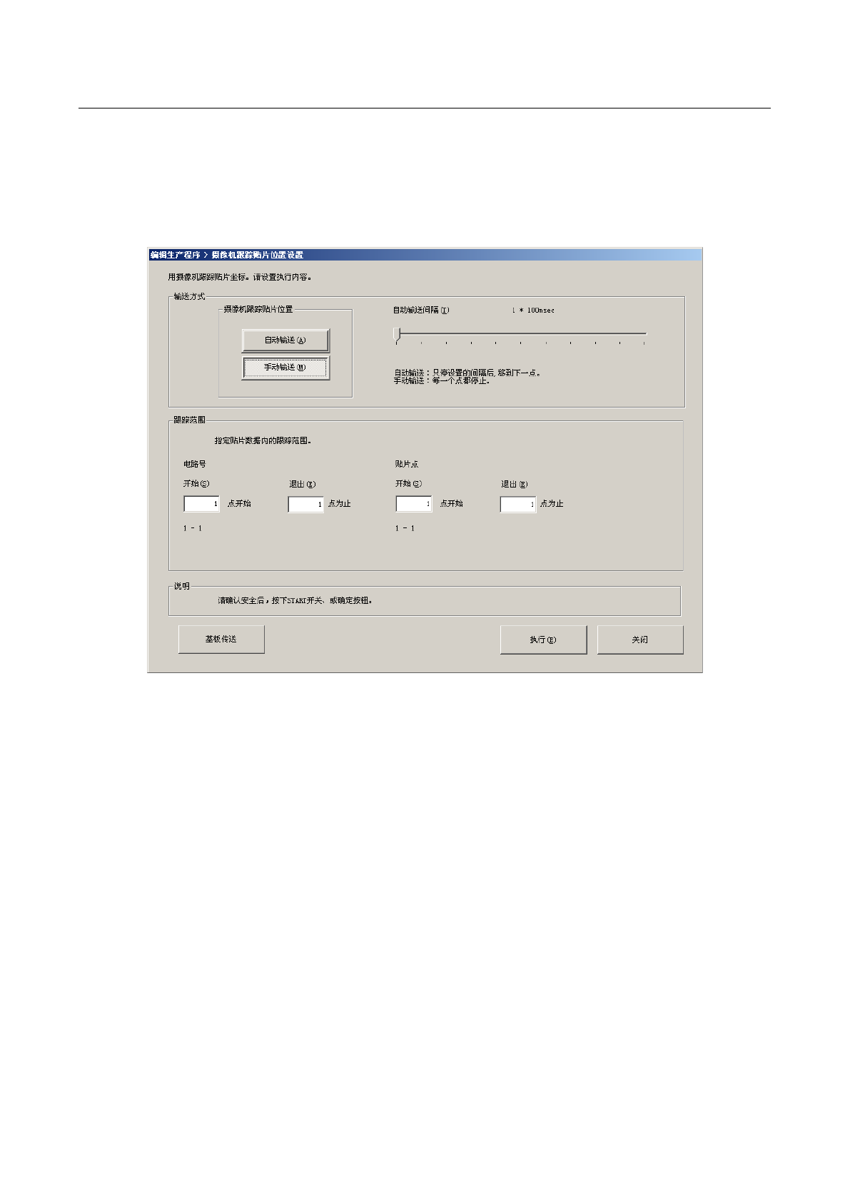 从菜单栏中选择「机器操作」/「跟踪」/「贴片位置」后,显示如下画面。