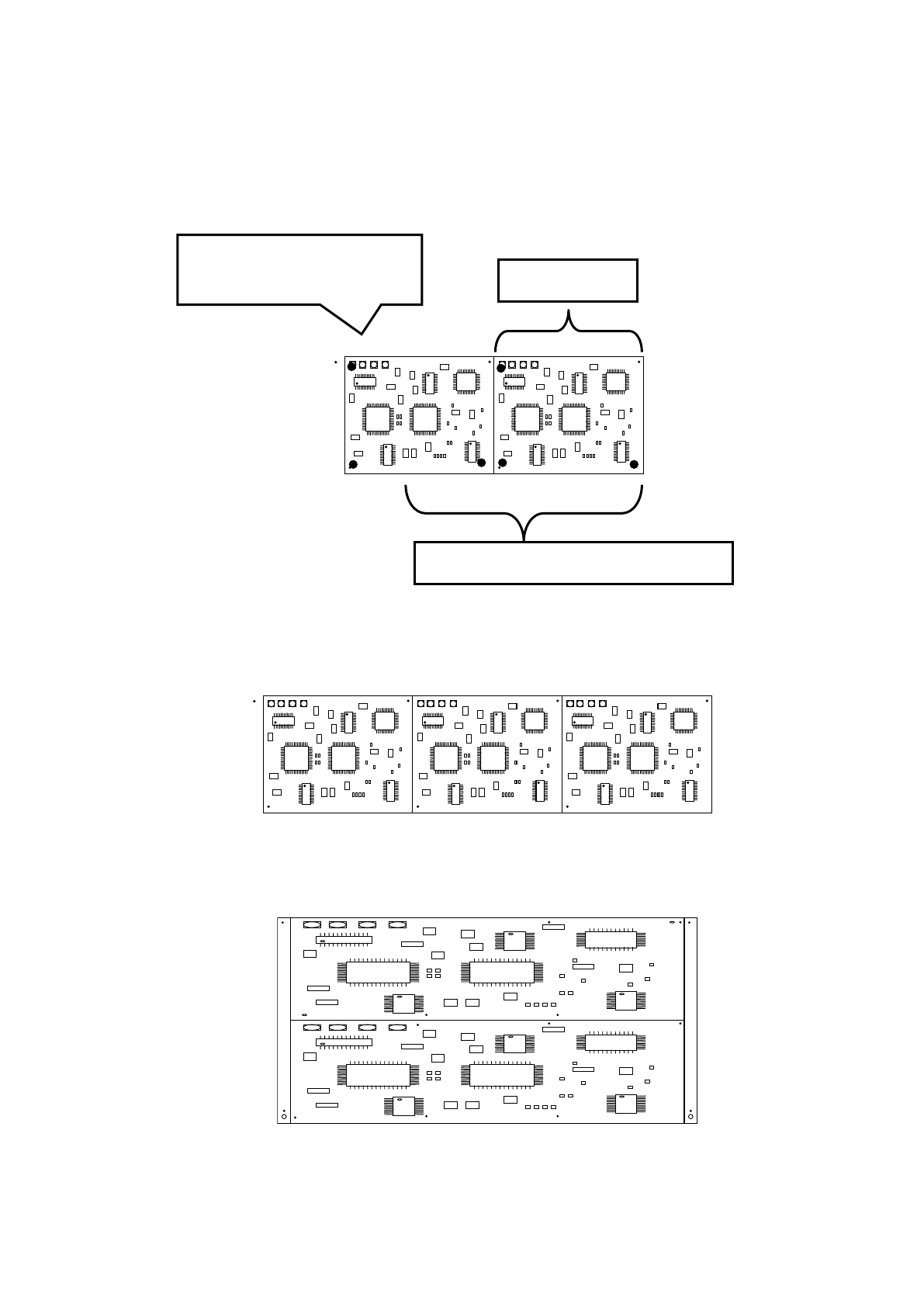 第 1 部 基本篇 第 4 章 制作生产程序 4- 307 4-5-5-3-3 BOC 标志的注意点 基板外形尺寸 X 方向尺寸超过规定尺寸时,对于多面矩阵基板及多面非矩阵 基板,电路在 X 方向被分割 时, 可以 选择 使用各电路标志 , 但不能进行生产。 在开始生产前显示错 误。 以下示例为基板 X 尺寸为 50 0mm ,在 X 方向被分割为 2 块的情况。 以下基板外形尺寸 X 在 410m m 以上, X 方向被分割时, BO…