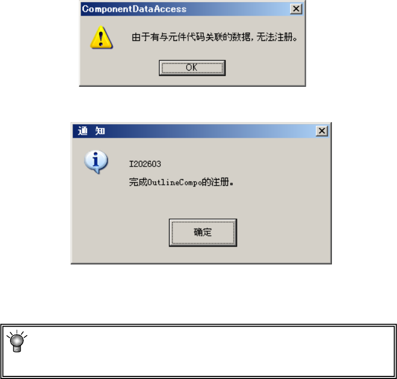 显示如下错误信息时,表明已经与数据库的元件数据建立了关联。