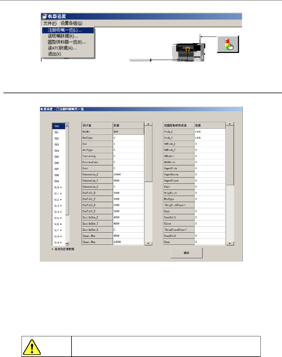 左侧的列表框显示目前已注册的吸嘴信息的吸嘴号码一览。