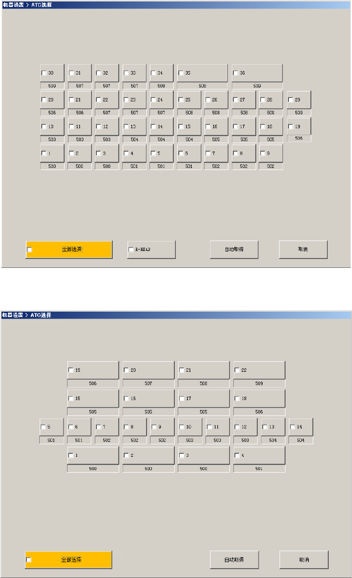 勾选需要分配的 ATC 号,按下[自动取得]按钮,则被选择的 ATC 号的吸嘴可依次自动完成