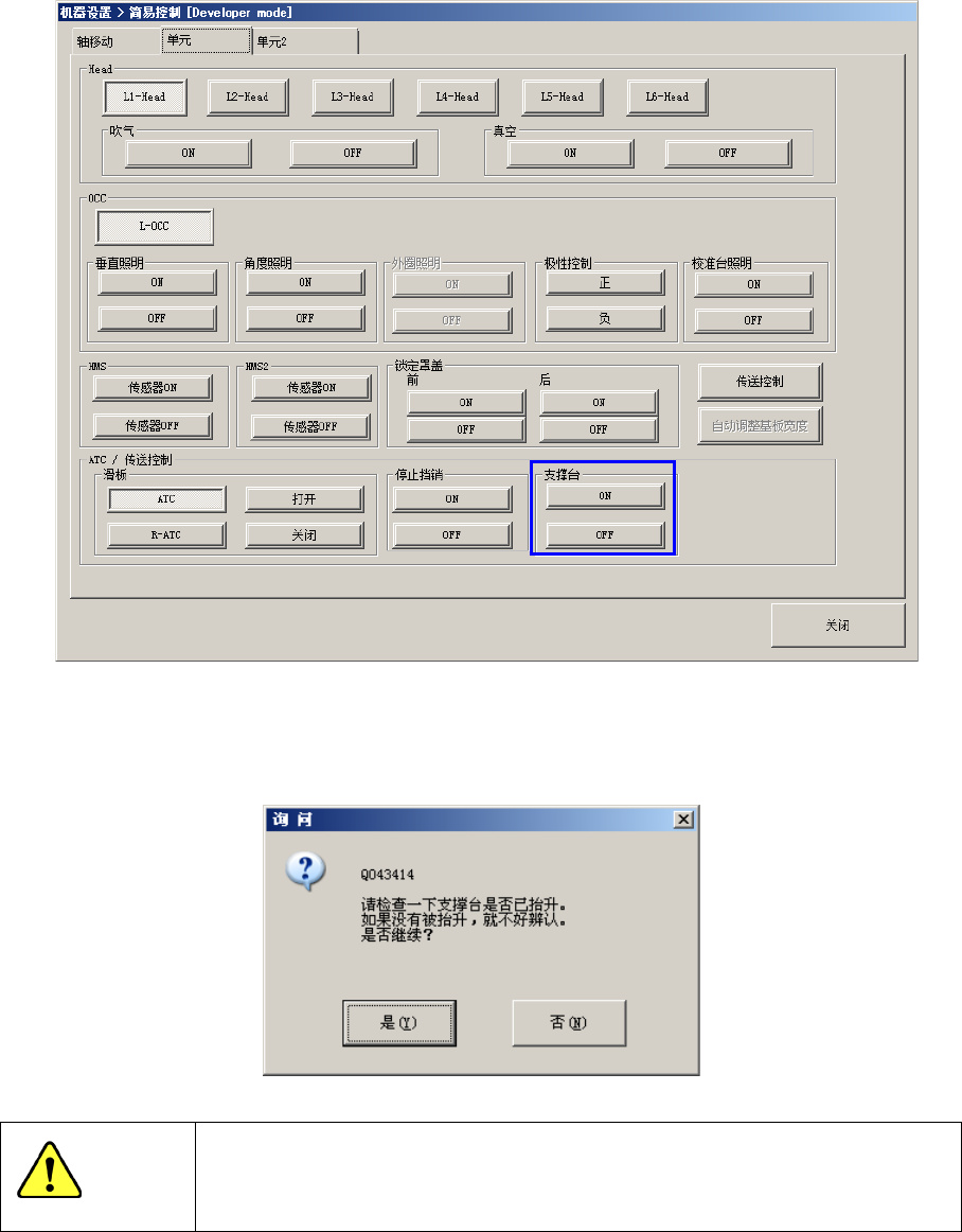 在执行示教前,请启动简易控制,把支撑台设置为 ON 的状态。