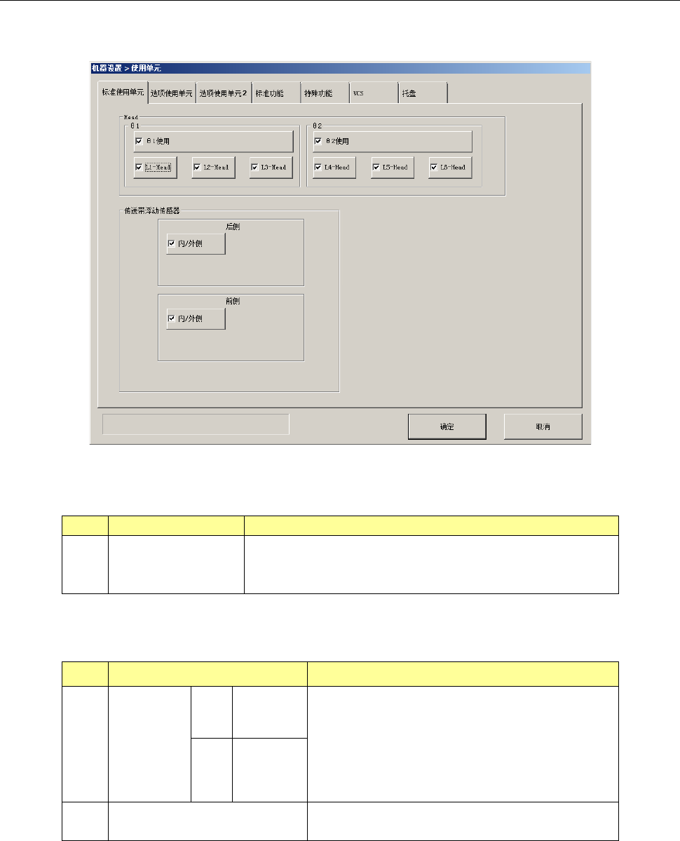 可以选择各选项卡,设置[标准使用单元]、[选项使用单元]、[使用单元(标准功能)]