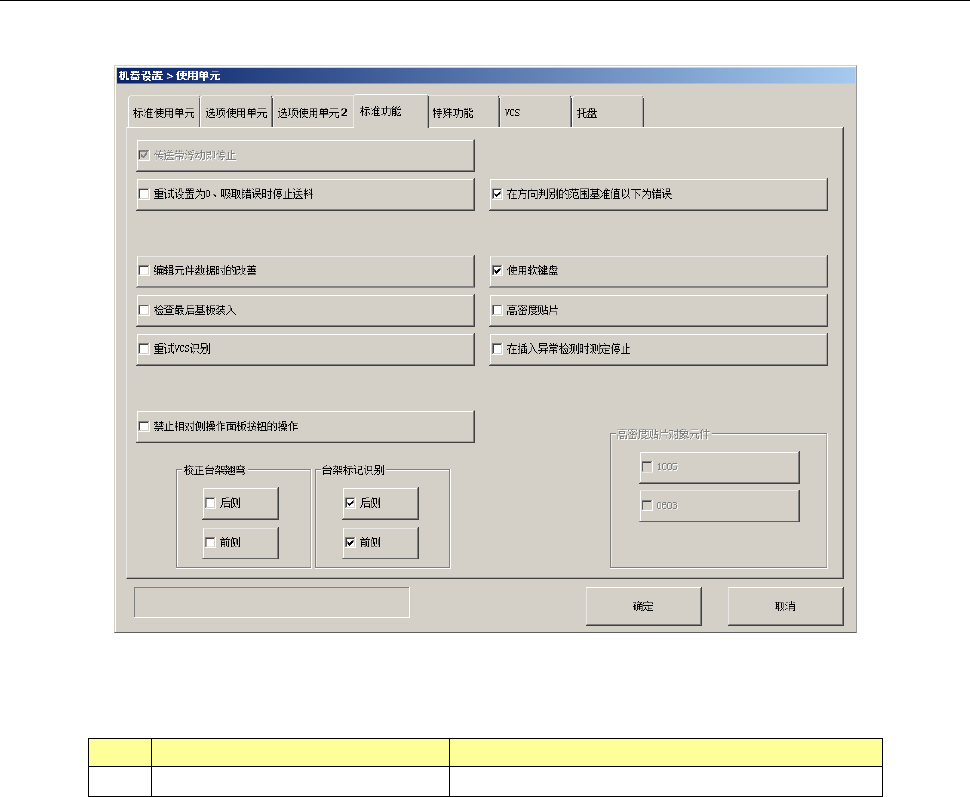 生产程序为完成贴片需要上述单元时,是否实际进行贴片,如下表显示。