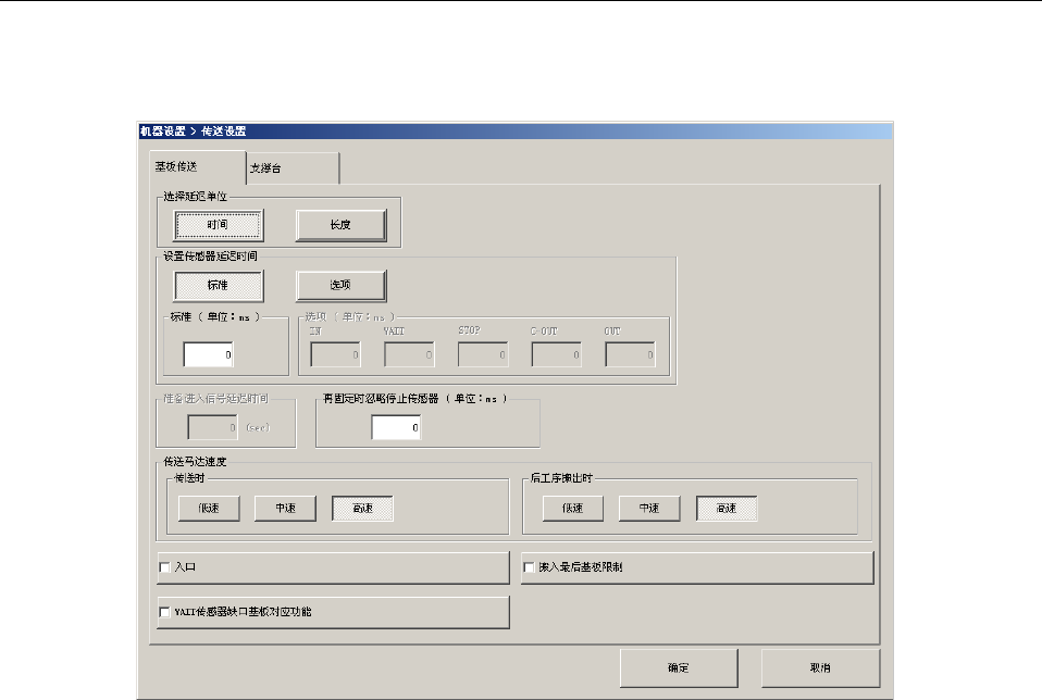 选择传送设置后,会显示下列画面。选择支撑台的选项卡时,显示如下画面。