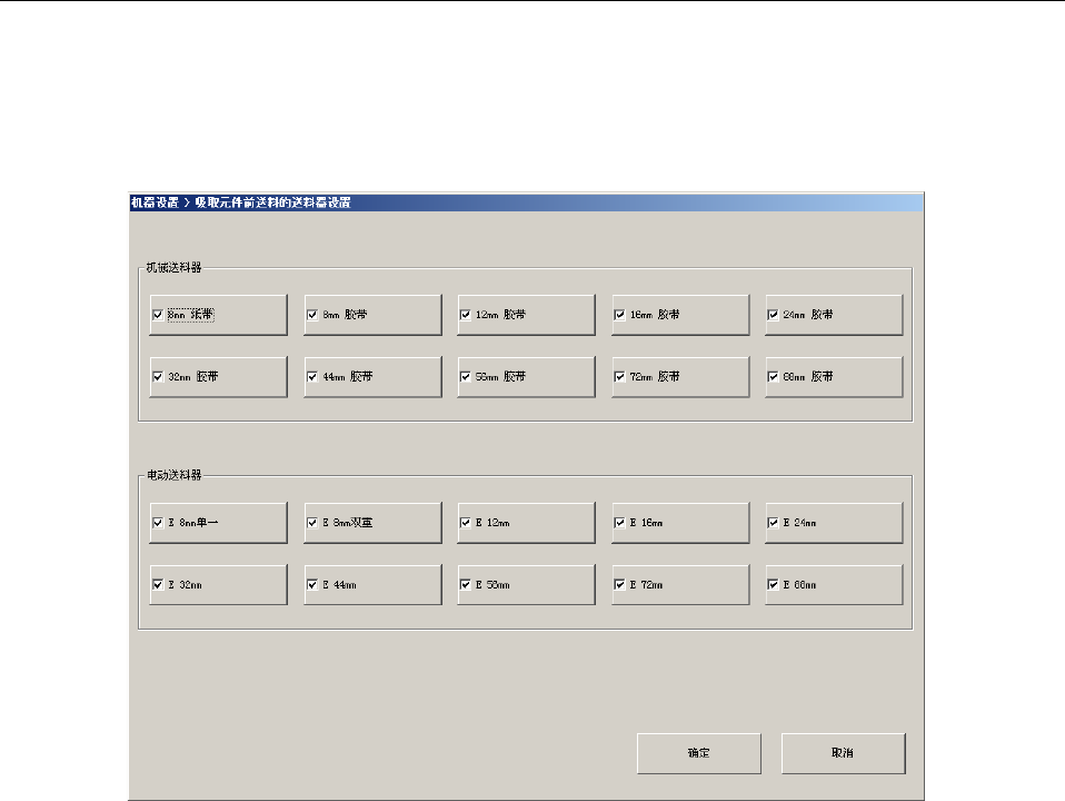 前送料」动作。取消勾选的送料器种类则为「标准送料」动作。