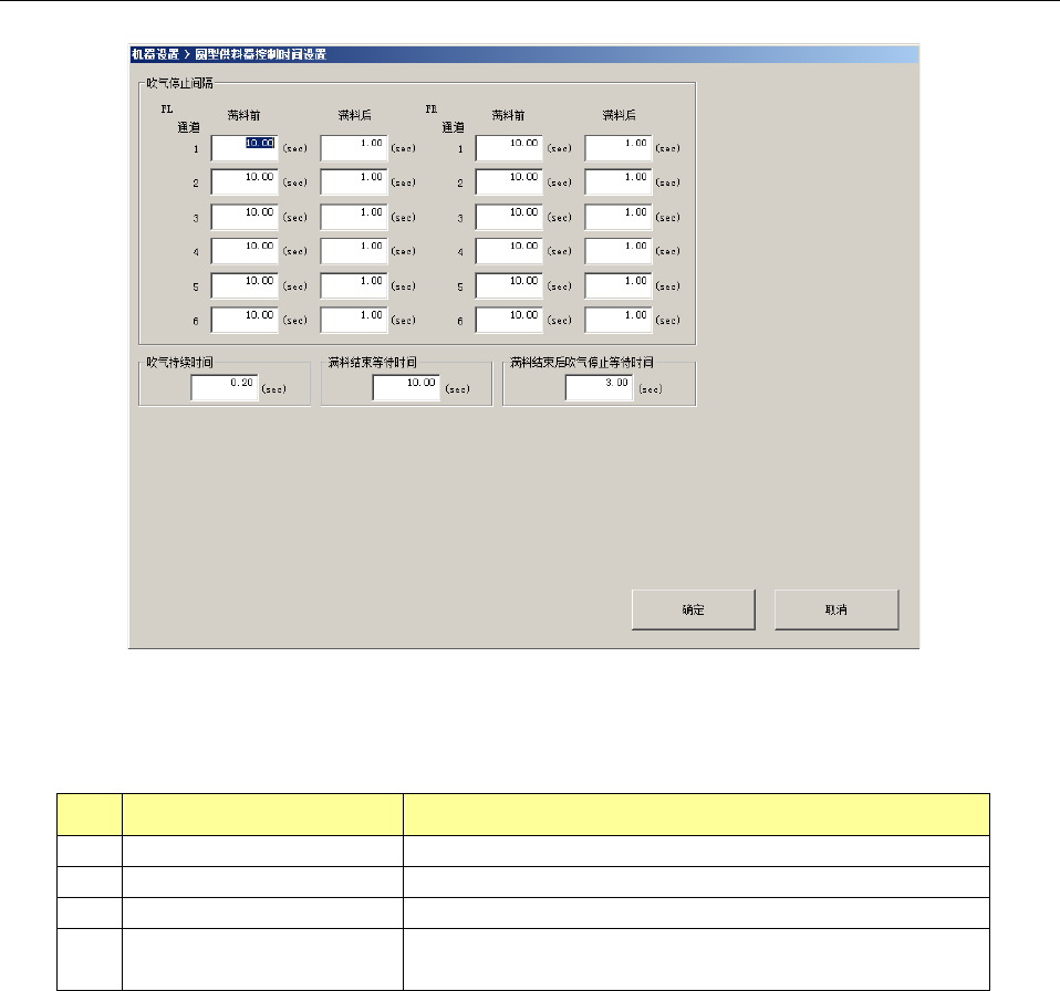 设置满料结束前和满料结束后的吹气间隔。