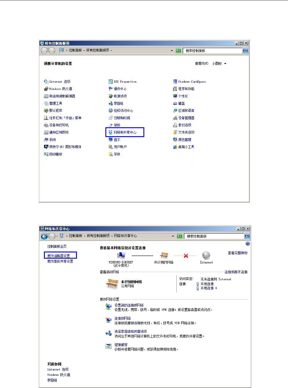 (2) 选择[更改适配器设置]。