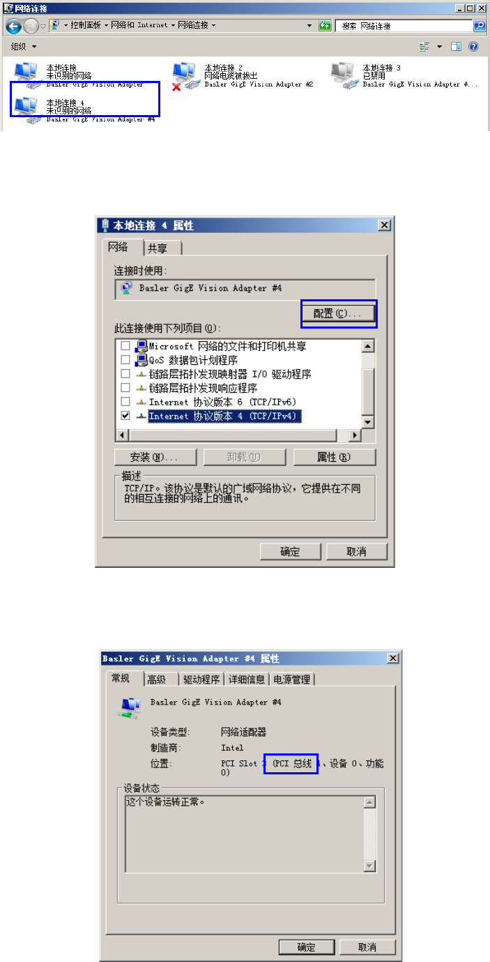第 2 部 功能详解篇 第 8 章 机器设置 8- 75 (3) 请单击 [ 本地连接 ] 图标,选择 [ 属性 ] 。 (4) 显示 [ 本地连接 的属性 ] 对话框。 请按下此画 面中的配置按钮 。 (5) 请确认 PCI 总线 为【 4 】。 (L AN 端口 4) 如果 PCI 总线的数值不是 4 ,请搜索 PCI 总线为 4 的连接,进行以下设置。