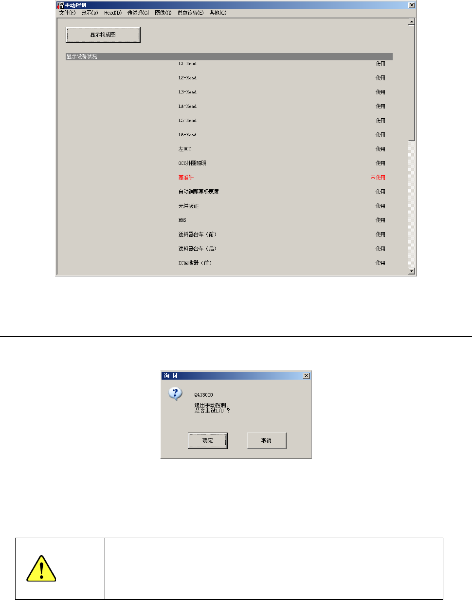 「确定」:执行I/O安全方向设置后退出。例如,Head带有吸嘴时,将吸嘴放回ATC后,再退出