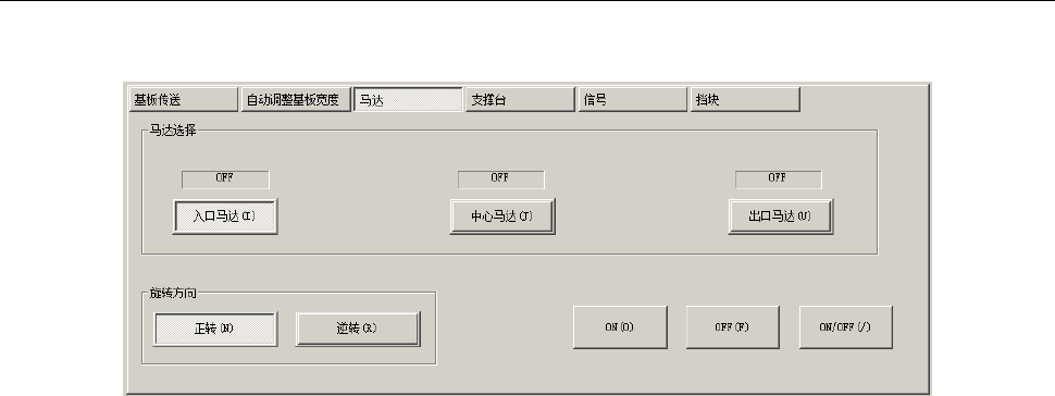 第 2 部 功能详 解篇 第 9 章 手动 控制 9- 28 9-5- 1 - 3 控制对象:马达 按下 [ 马达 ] 按钮后 ,会显示如下画 面。 (1) 马达选择 选择各种控制马达。 (2) 旋转方向 选择马达的旋转方向 。 (3) ON /OFF 按钮 控制所选择的传送马 达的 ON / OFF 。 选择 [ON ( O ) ] 按钮、 [OFF ( F ) ] 按钮、 [ON/OFF ( / ) ] 按钮,或按 [ F3 ] 键…