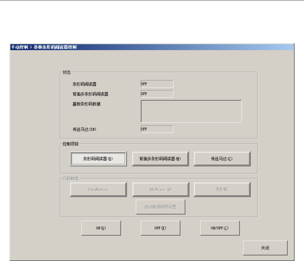 会显示基板条形码阅读器控制画面。对象为一次元条形码(一维条形码)。