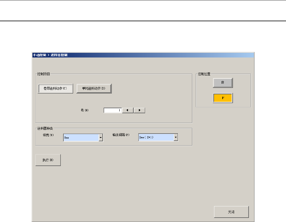 在下拉菜单中点击[供料器(E)]-[送料针控制(N)]、或从命令按钮中点击[送料针控制]后,可显示送料针