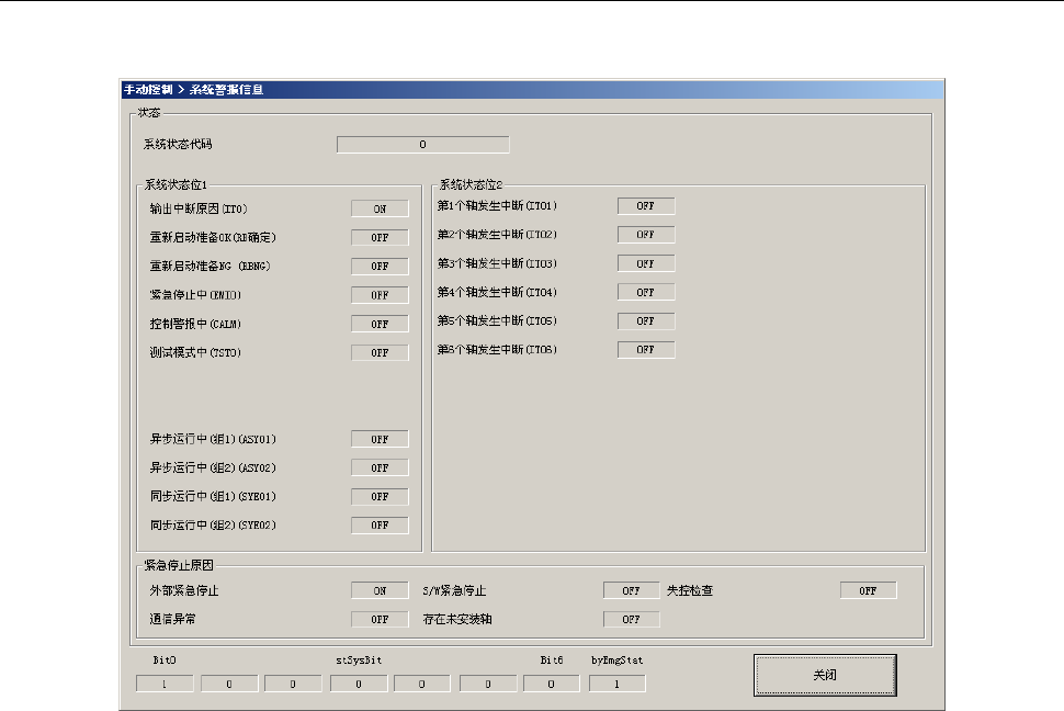 显示状态代码、及各种状态位的 ON/OFF 状态。