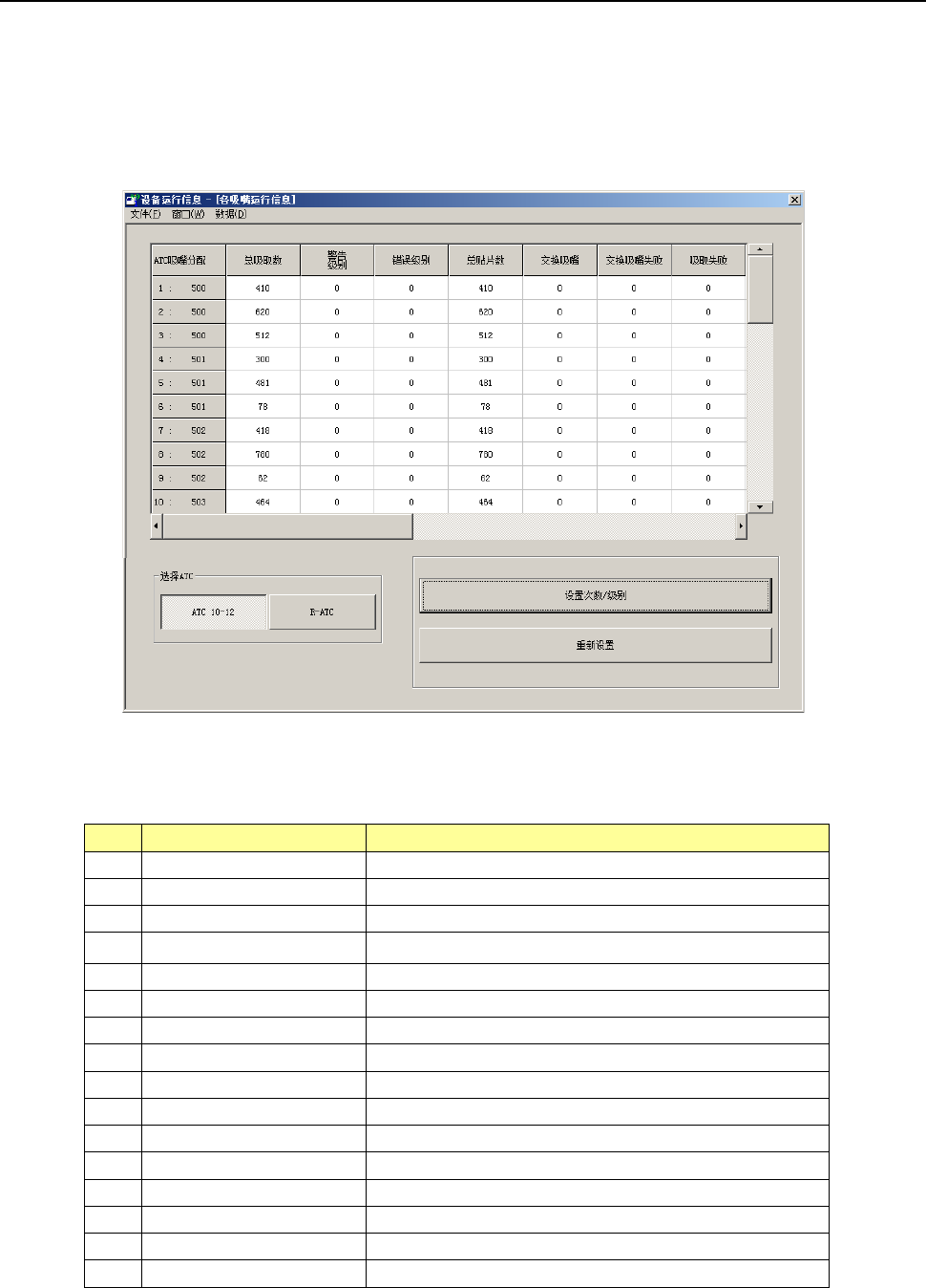 在列表中显示各吸嘴的运行次数及相关的数据。
