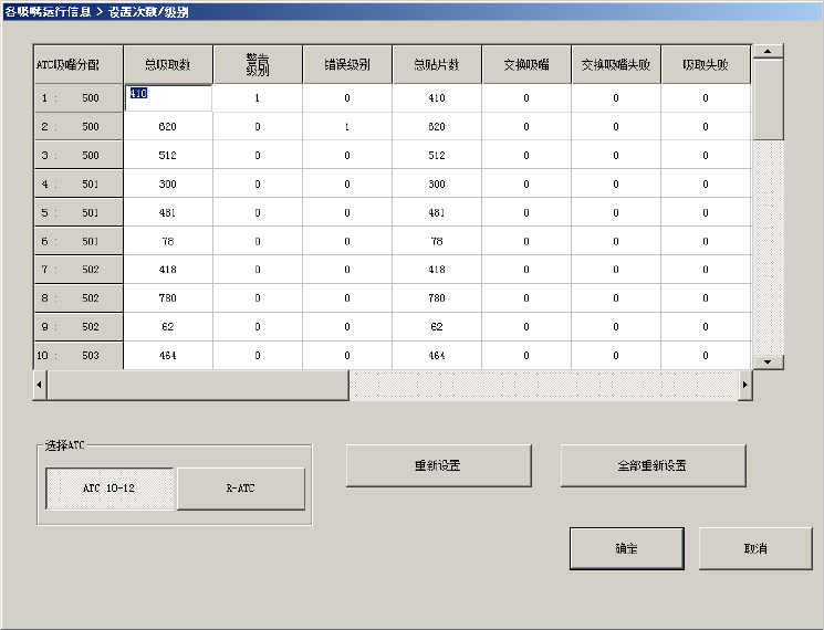 按下[设置次数/级别]按钮、或选择菜单栏的「数据(D)」 →「设置 - 每个吸嘴的运行信息」,即