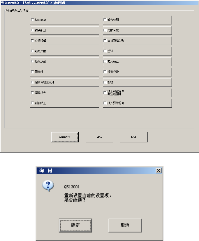 ・ 在[重新设置询问信息]中按[确定]后,可对 LF、LR、RF、RR 各组的吸嘴的对应项目进行重新