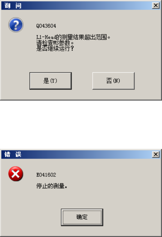 如果是激光识别错误或测量结果超出规定范围外以外的错误,则显示对象错误的提示信息后,