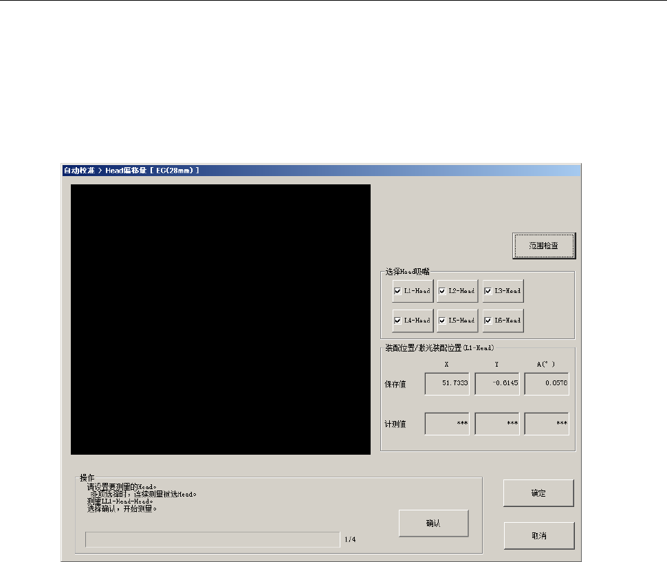 按下[范围检查]按钮时,如果并列的 Head 偏移值(X,Y)的最小值、最大值超过 30μ 时,会显示