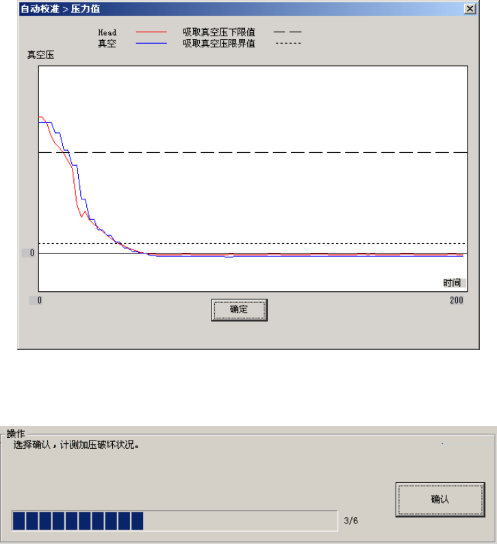 按下[确认]按钮,则设定 Head 移动到真空校准上,对加压破坏状况进行 3 次测量。