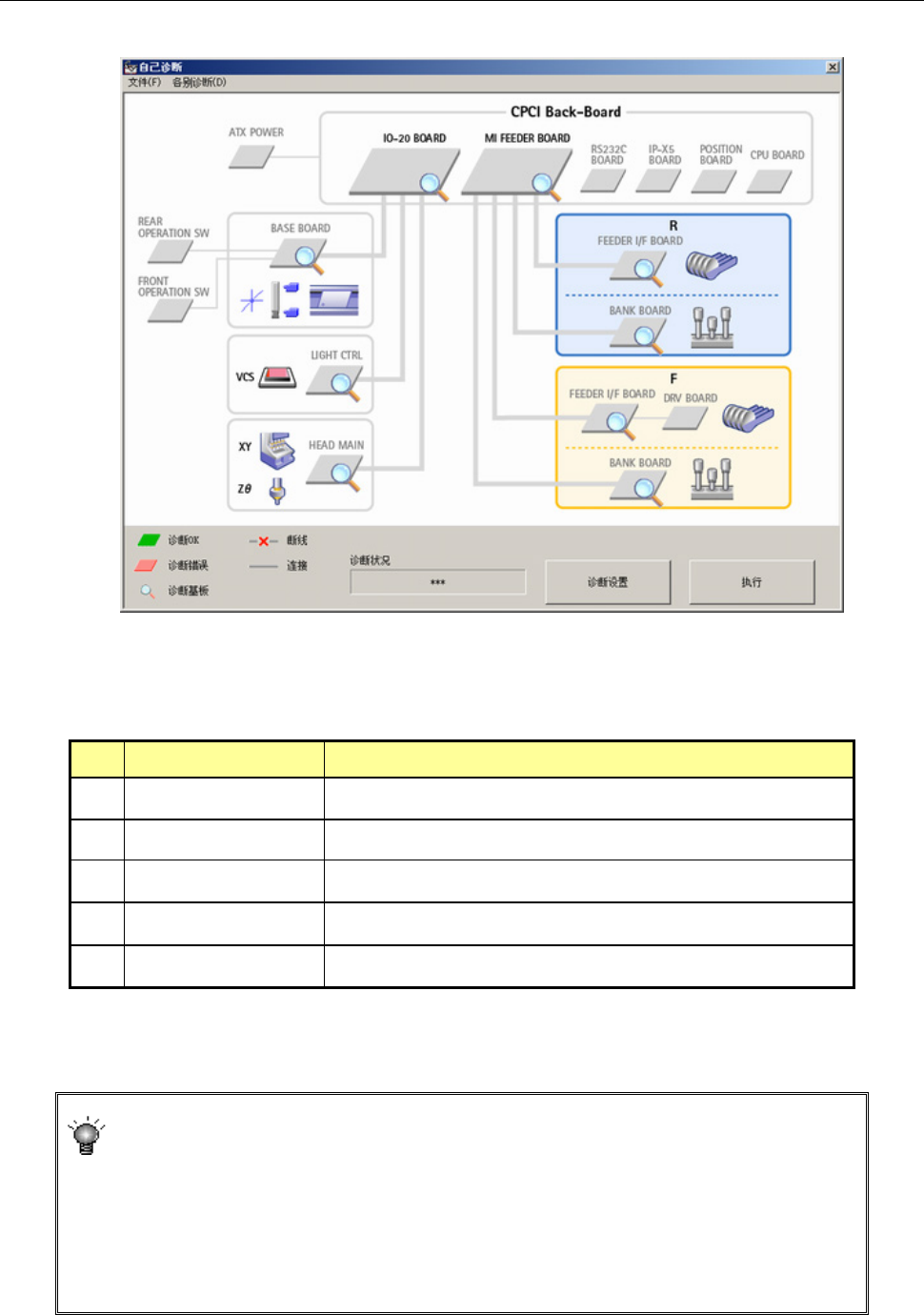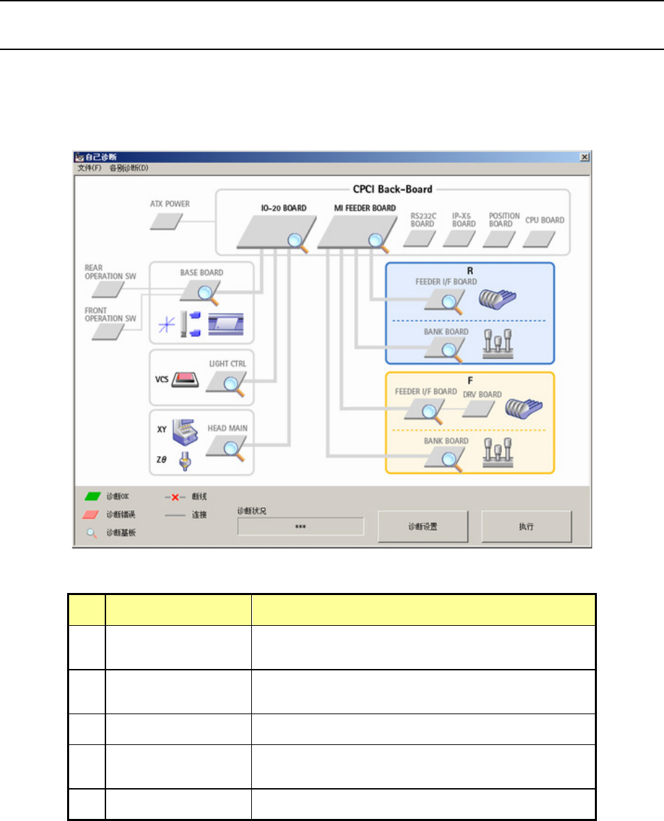 ・ 诊断对象基板带有放大镜标记,诊断中[诊断状况]栏内输出对应基板的诊断状况。