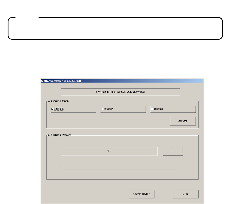 ③ 利用[信息的取得和保存]按钮取得设备信息,并将取得的文件进行压缩后保存。