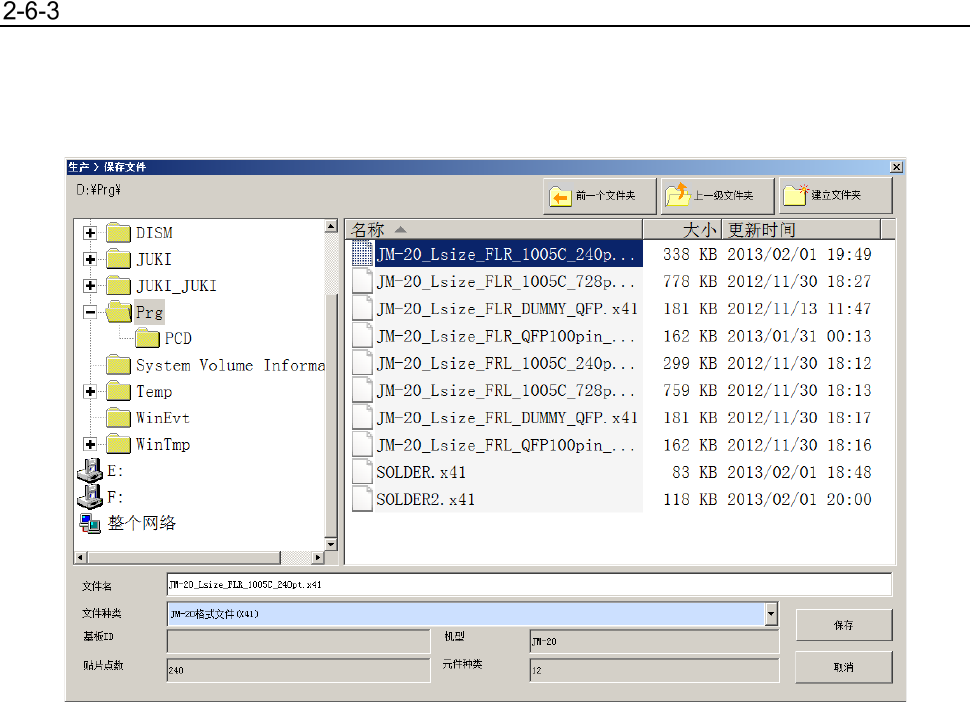 对编辑后的生产程序需要改变文件夹或指定文件名后保存时,选择此项。