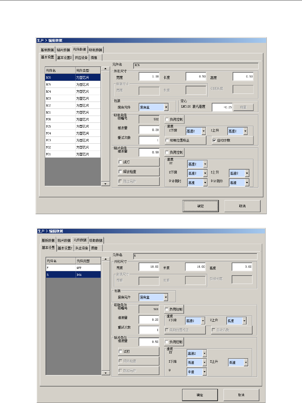 第 1 部 基本篇 第 2 章 生产 2- 84 1) 列表 显示画面 左侧列表的内容。 项目 内容 元件名 显示元件的名称 。 元件类型 显示元件的类型 。 2) 元件名 显示元件的名称 。 3) 外形尺寸 显示、编辑元件 的外形尺寸。 项目 内容 用户级别 宽度 输入元件的外形 尺寸的宽度。 操作员 长度 输入元件的外形 尺寸的长度。 操作员 高度 输入元件的外形 尺寸的高度。 操作员 封装尺寸宽度 元件品种为插入 元件或 INS …