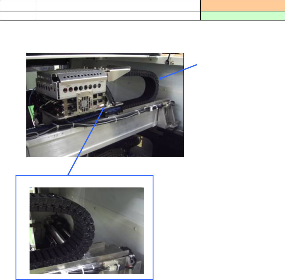 1)用抹布、柔软的布等,擦掉 X 轴普拉轨道安装的 CB(电缆套)支撑座内侧部分的灰尘、异物。