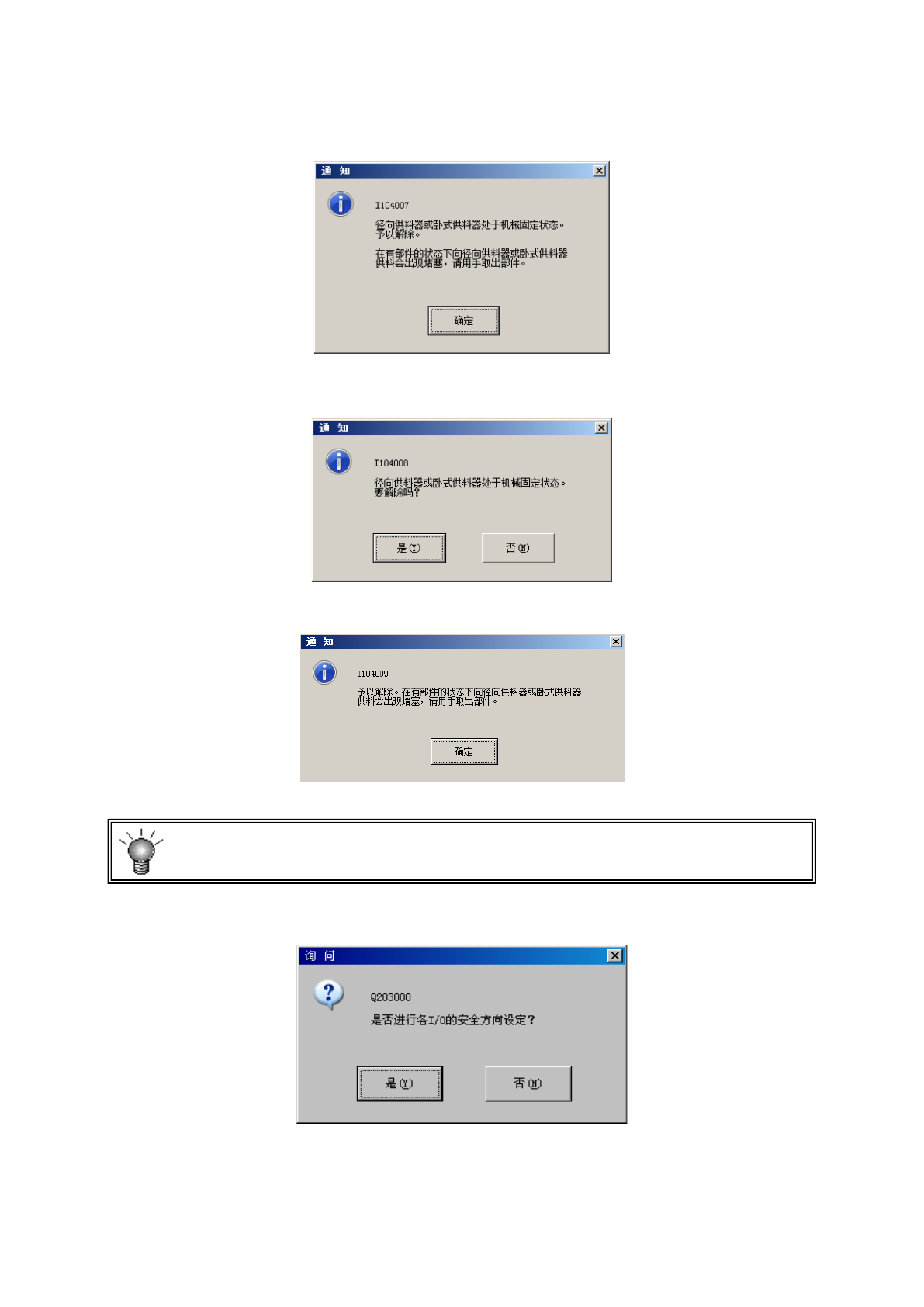 ●是 :供料器的固定会被解除,显示以下通知。