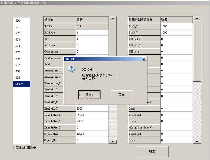 选择“是”后,该吸嘴的数据被覆盖更新。