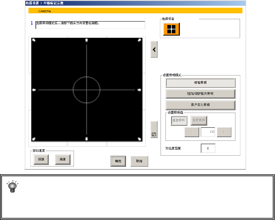 标记相对于基板反映较暗时,请按下选择装置的摄像机按钮。