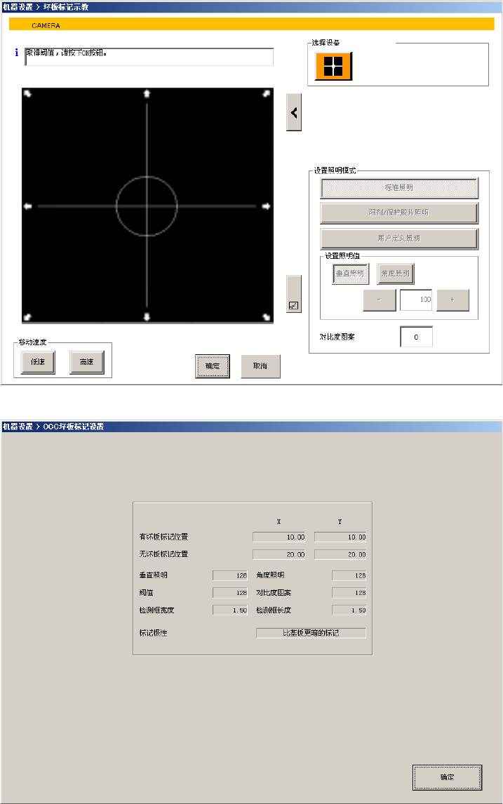 a) 将焦点放在[设置 OCC 坏板标记阈值],通过功能栏调出示教画面,按[摄像机]按钮后