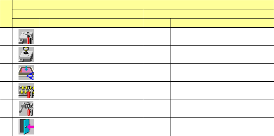 第 1 部 基本篇 第 1 章 装置概要 1- 73 ( 5 )自动 校准 ( 6 )装置 运行信息 No. 页 1/2 2/2 图标 名称 图标 名称 1 激光高度 2 3 Head 偏移量 4 VCS 偏移 5 VCS 2 值化阈值 6 真空校准 7 8 退出 返回桌面。 No. 页 1/2 2/2 图标 名称 图标 名称 1 机器运行信息 HMS 运行信 息 2 各吸嘴运行信息 信号灯运行信息 3 各 Head 运行信息 迷你信号…