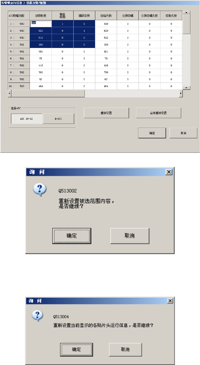 列表中显示各吸嘴的运行次数及与之相关的数据。