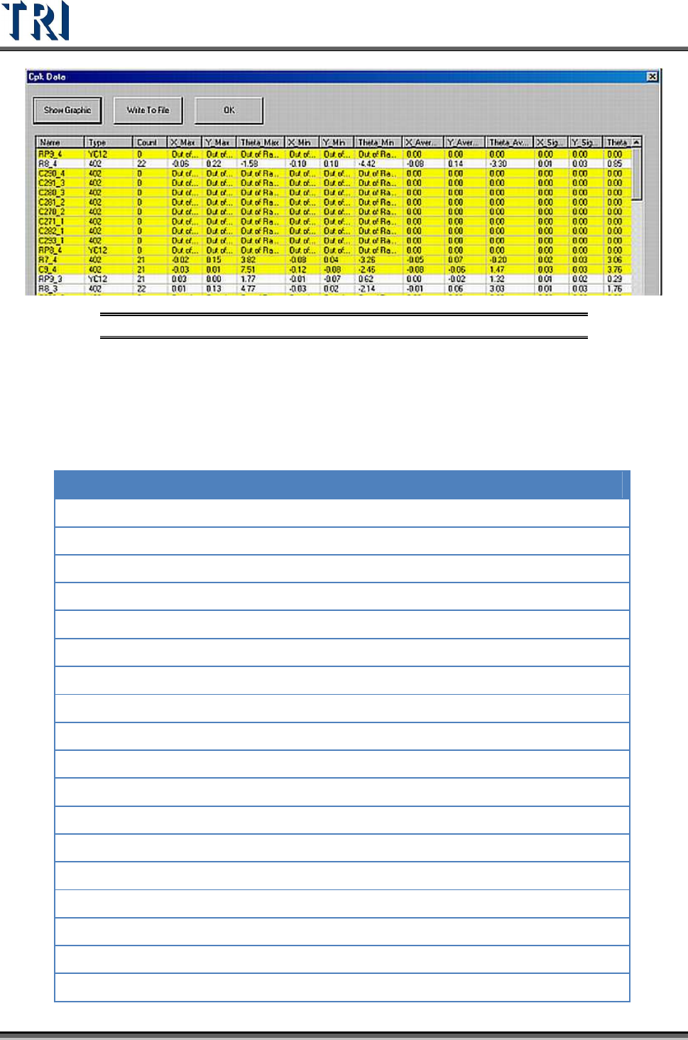 Figure 169: Cpk Data Table