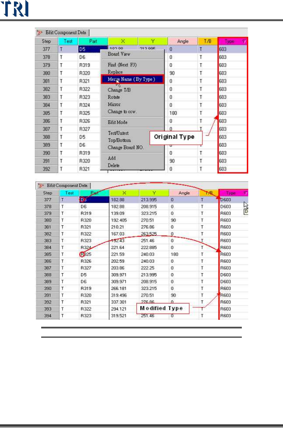 Test Research Inc. TR7500 Series User Guide – Software v.2.9.0 137 Figure 222 : Merge Multipl e Name By Ty pe Process & Result