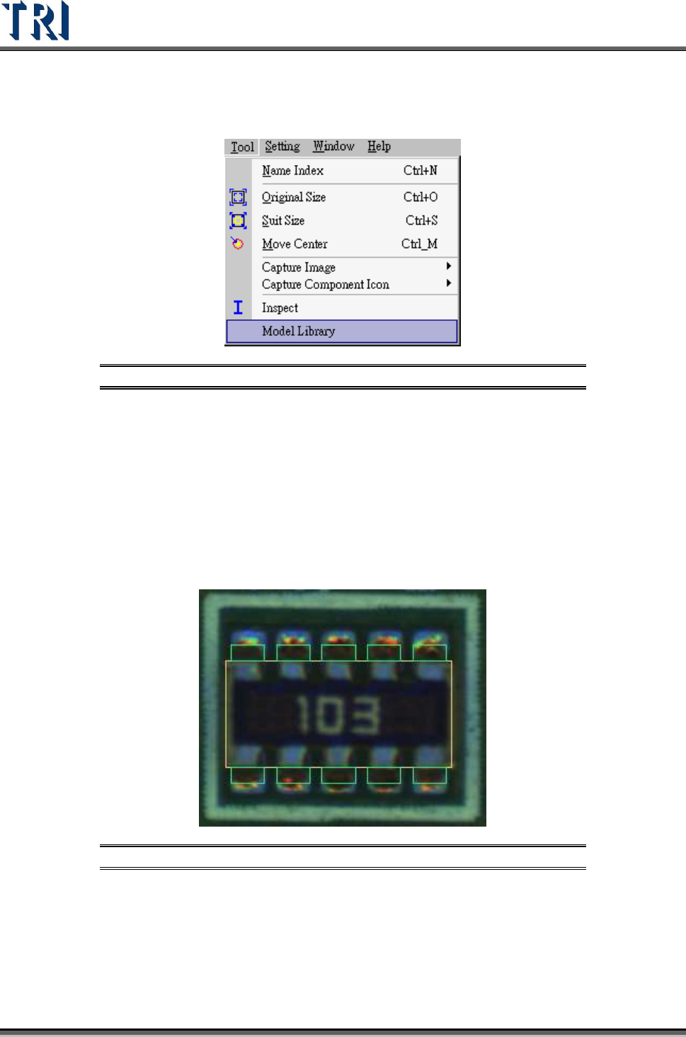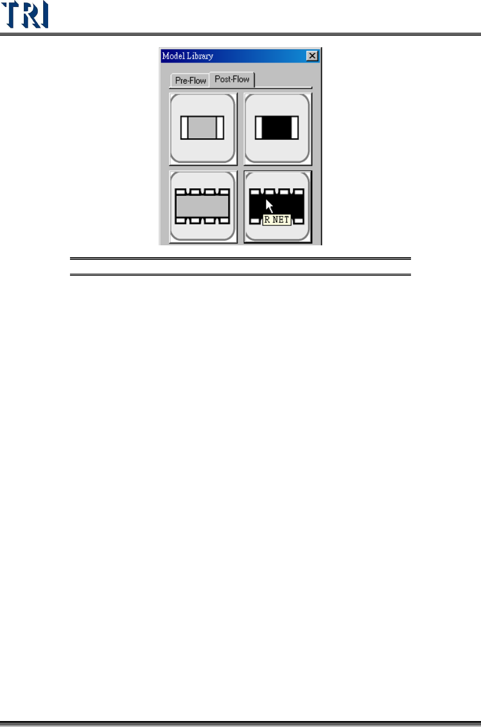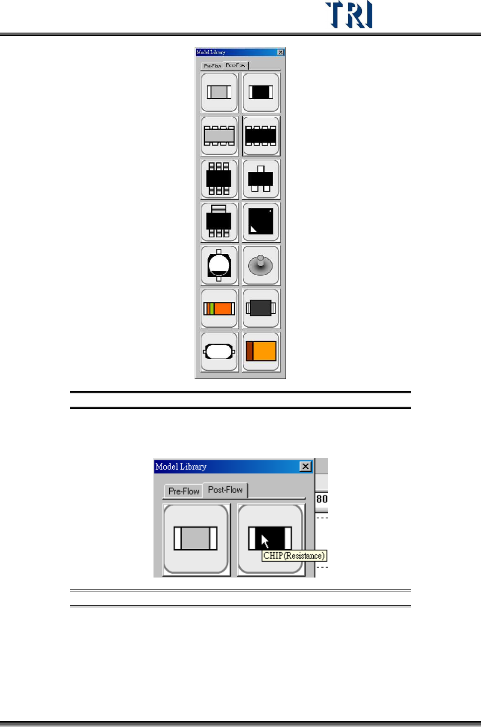 Test Research Inc. TR7500 Series User Guide – Software v.2.9.0 193 Figure 326 : Model Library Dialog 3. W hen the mouse cursor i s rolled over an icon , a label appears w ith compon ent type and kind. Refer to the figure…
