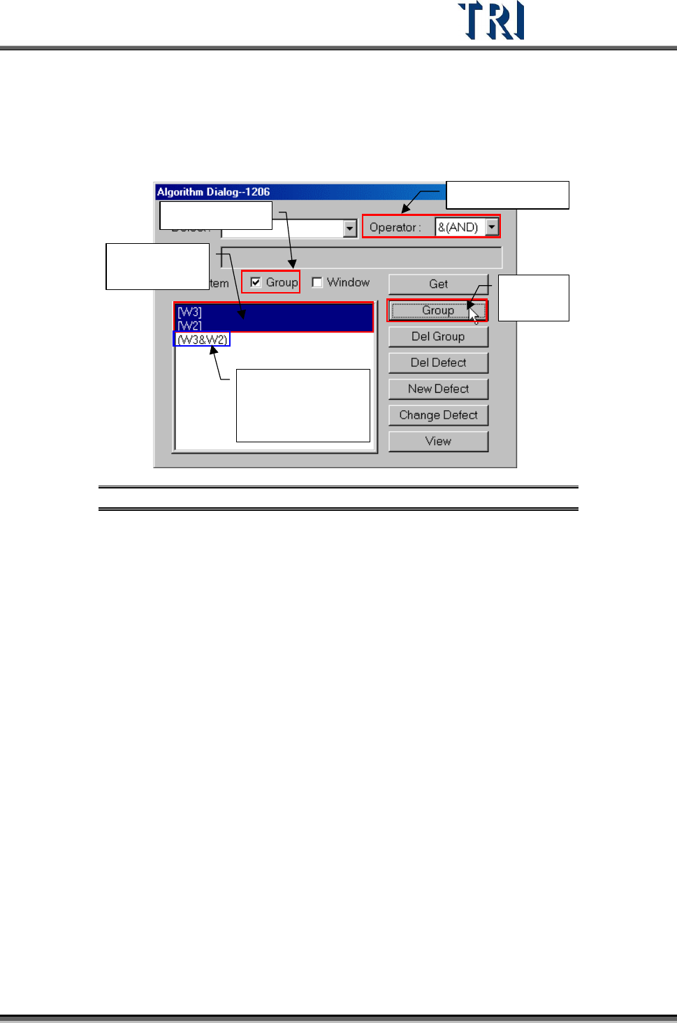 [Group/Item] – Select the logical operation with Group (logical formula) or current