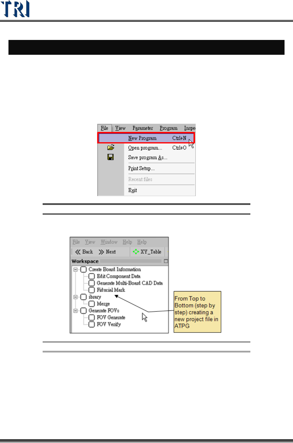 For a new program, an AOI file (*.aoi) needs to be created first for the TR7500 to read. There