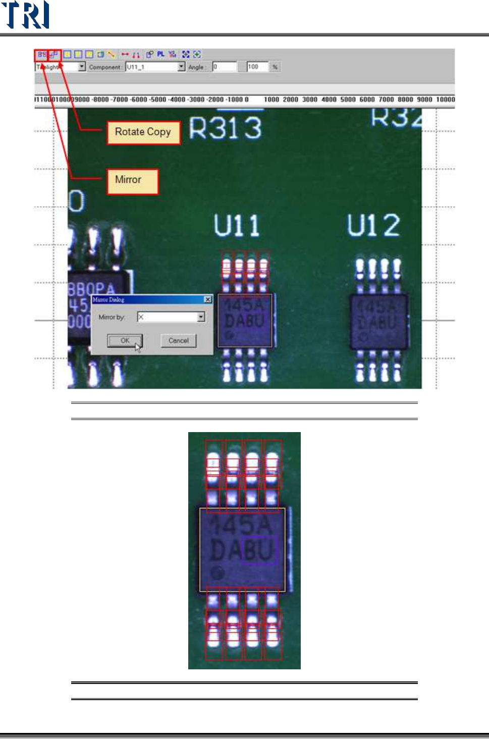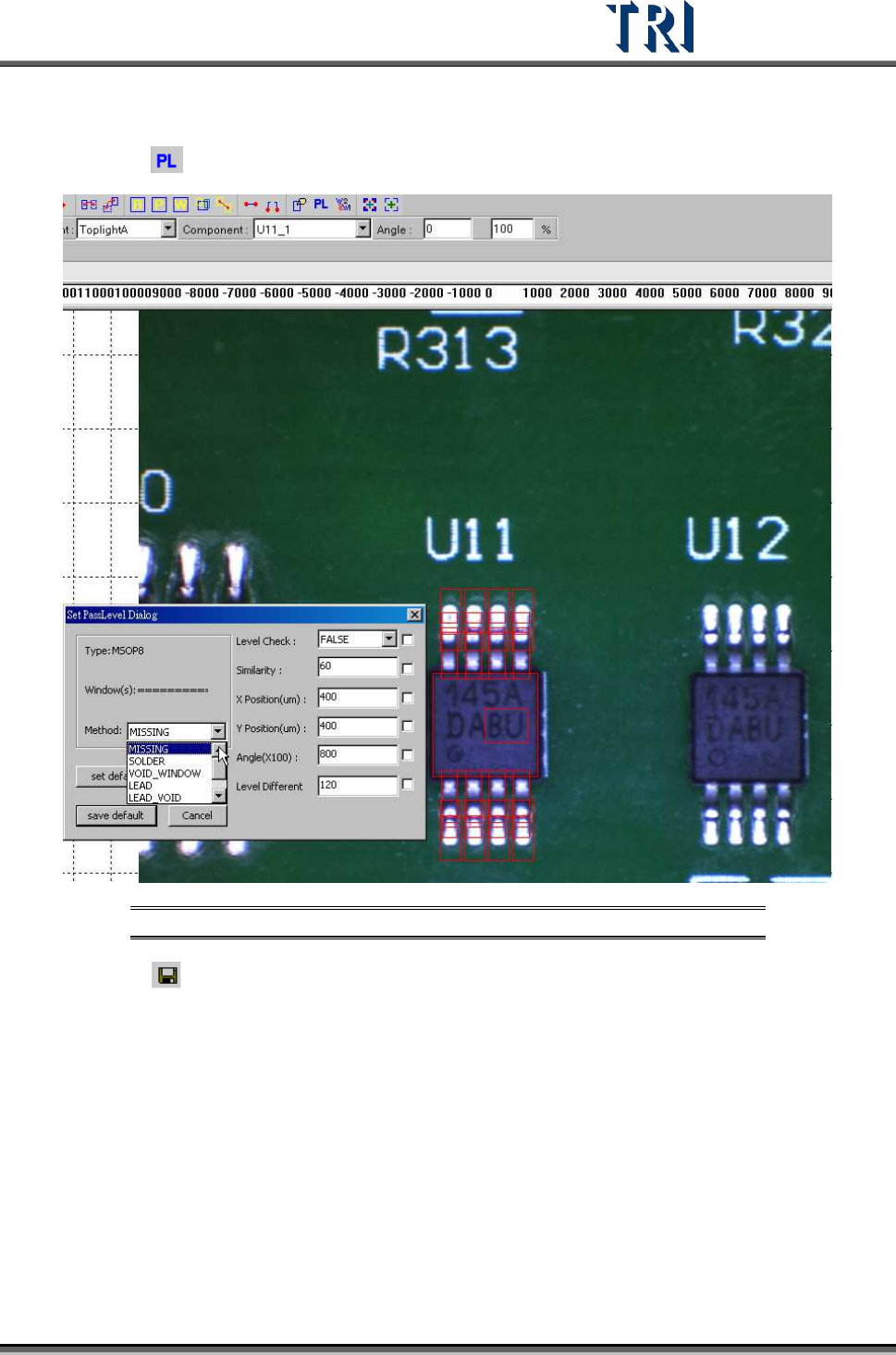 Test Research Inc. TR7500 Series User Guide – Software v.2.9.0 225 (8) Add images of lead and solder inspection windows. All inspection windows with the same method wi ll use t he image. (9) Click on [Pass Level] to set …