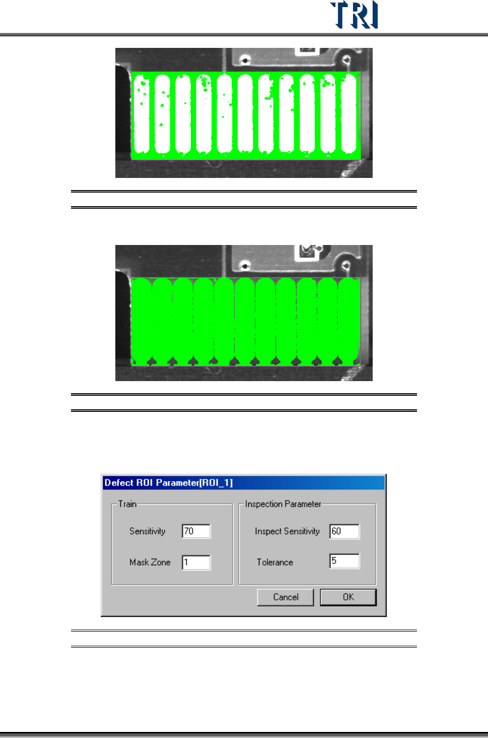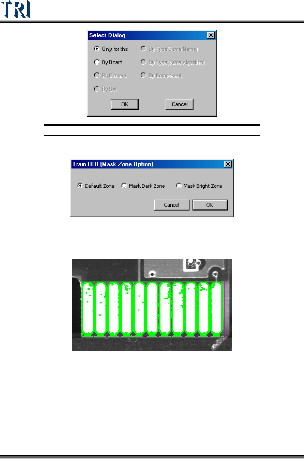 Test Research Inc. TR7500 Series User Guide – Software v.2.9.0 277 Figure 468 : Mask Dark Zon e Mask Bright Zone Figure 469 : Mask Bright Zo ne 11.9.5. 2 ROI Parameter Set the ROI paramete r s. Figure 470 : ROI Paramet…