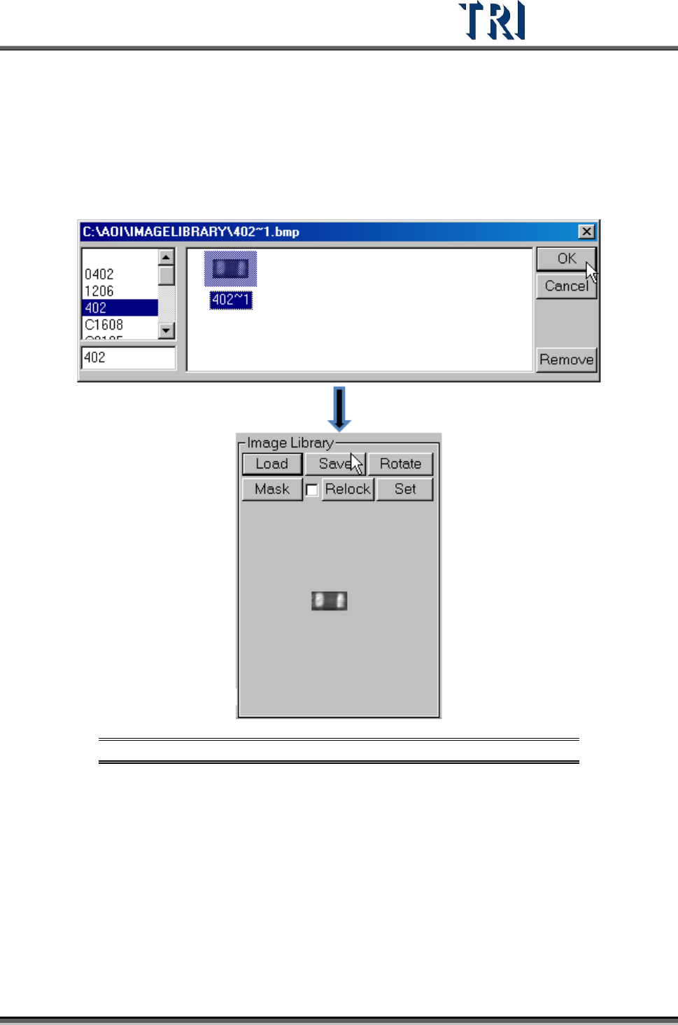 Test Research Inc. TR7500 Series User Guide – Software v.2.9.0 285 11.9.12 Image Library 11.9.12 .1 Load Load a saved image to use. After loadin g, t he image is displ ayed. Figure 476 : Load a Saved I mage 11.9.12 .2 Sa…