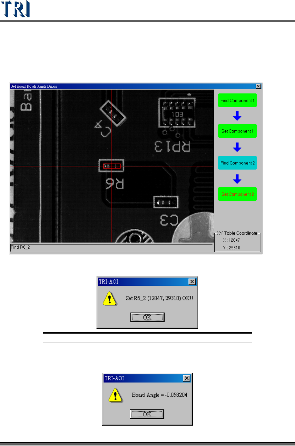 Test Research Inc. TR7500 Series User Guide – Software v.2.9.0 15 Figure 25: Conf irm Board R otation Angle 2.5.3 Find the located comp onent It is to get the gap betw een m ulti-boards by the located compone nt on eve r…